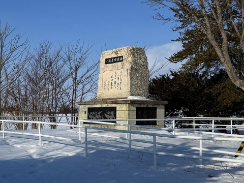 道の駅「十勝川温泉ガーデンスパ」から徒歩約8分のところにある歌碑。人馬一体となって広大な十勝の原野を...