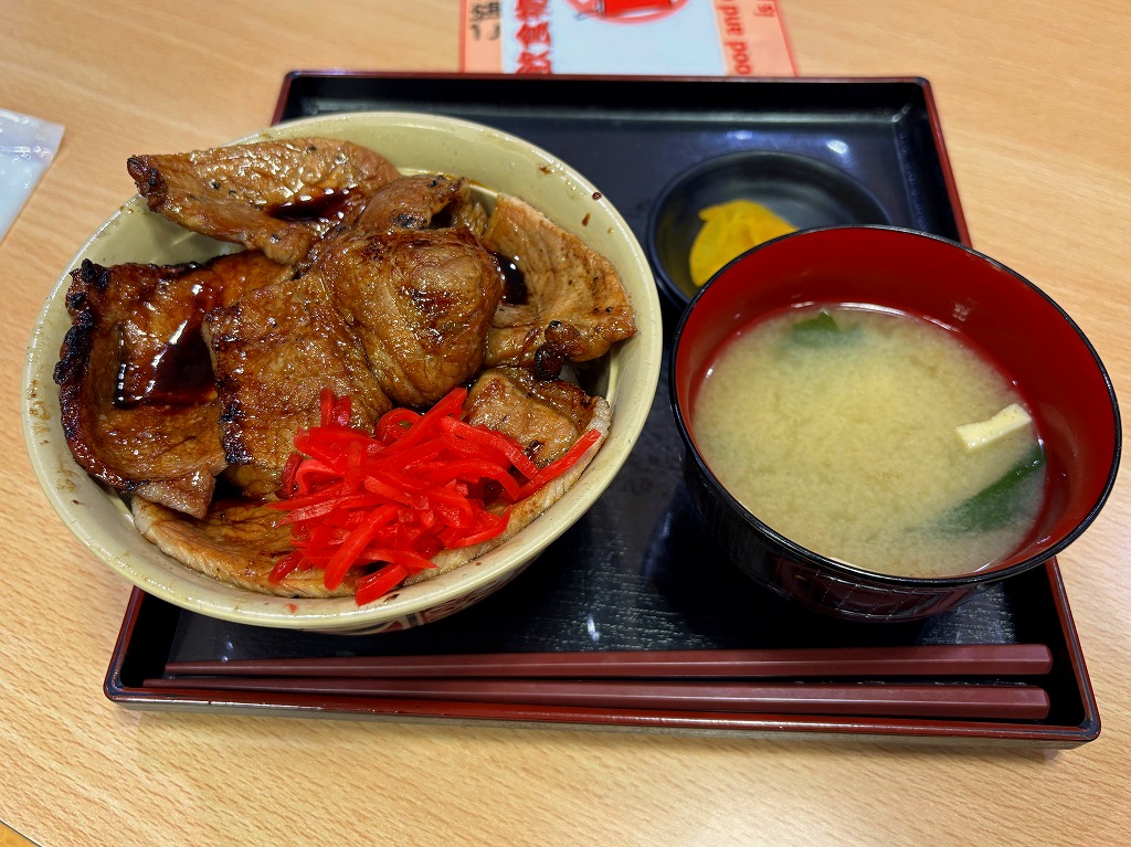 十勝地方の郷土料理「豚丼」を食べてみたところ、肉は適度に柔らかく、ご飯のベタつきもなく美味しくいただきました。市内の有名店で並んで食べなくてもこちらで十分だと感じました。