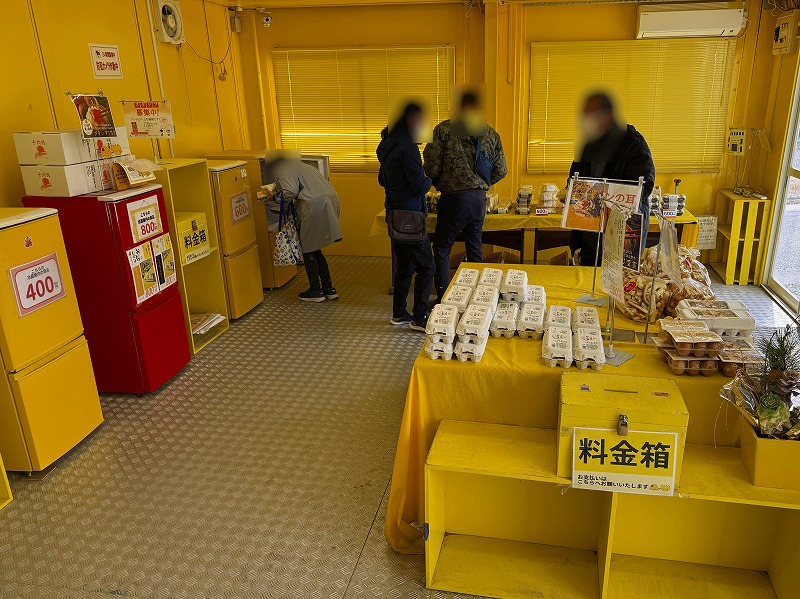 創業50年を超える「玉子サンド」メインの無人販売所で、敷地内の建物がすべて黄色で統一されているのが特徴です。