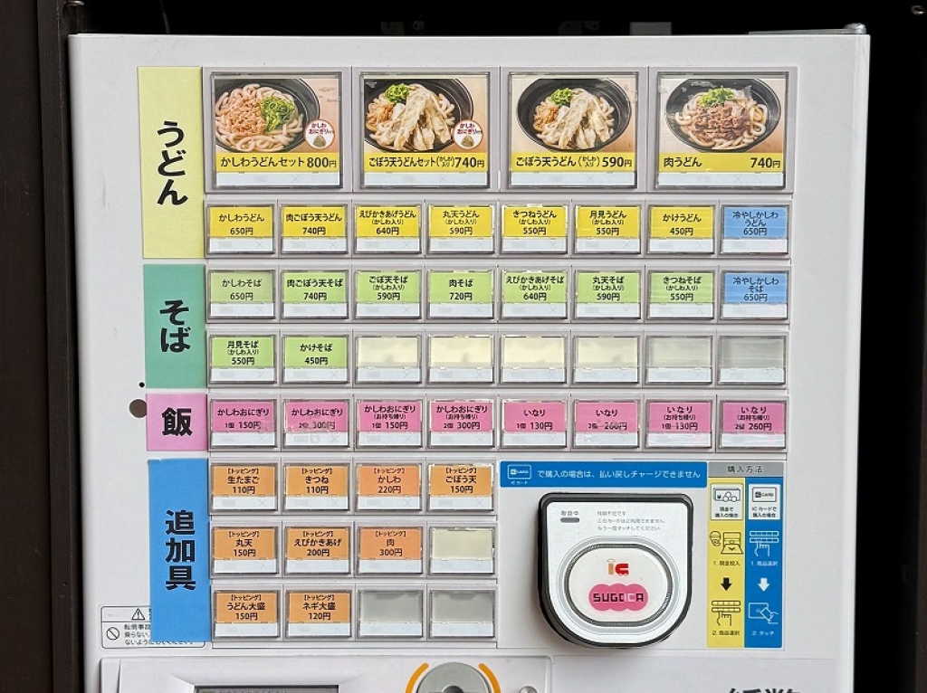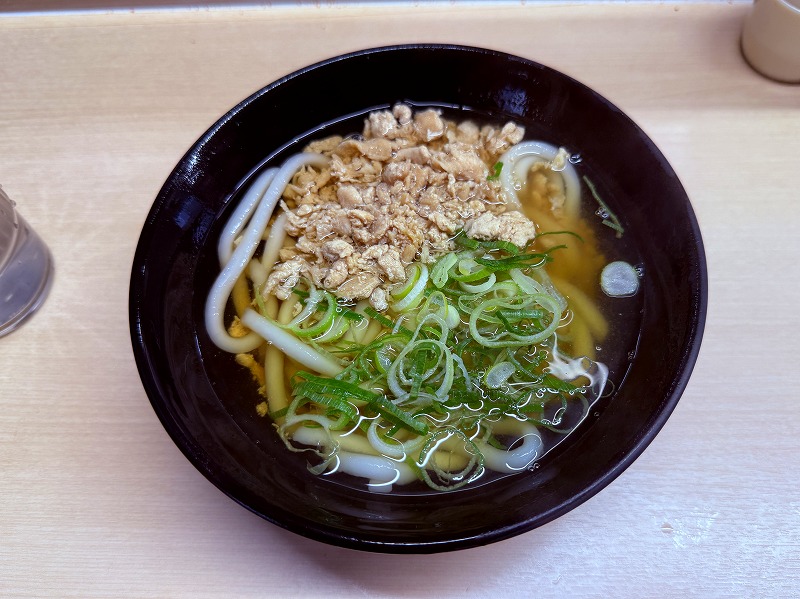 地元名物の「かしわうどん」や「かしわおにぎり」、「ごぼう天うどん」が食べられます。価格は、周辺の駅ホームにある店と比べるとやや高めの設定。